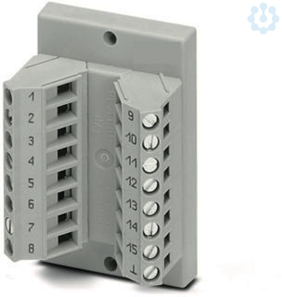Das VARIOFACE-Durchführungsmodul realisiert eine 1:1-Verbindung zwischen Schraubanschlussklemmen und einer D-Subminiatur-Stiftleiste (Polzahl 15). Es steht ein separater Masseabgriff zur Verfügung.