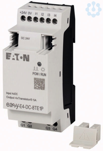 Ein-/Ausgangserweiterung für die Steuerrelais der Serie easyE4 mit einer Bemessungsbetriebsspannung von 24 VDC. Diese Erweiterung stellt 4 digitale Eingänge für 24 VDC und 4 Transistor-Ausgänge für 24 VDC zur Verfügung. Die Anschlüsse erfolgen per Push-In-Klemmen. Die Verbindung zum Steuerrelais oder einer anderen Erweiterung der Serie easyE4 erfolgt mittels Verbindungsstecker EASY-E4-CONNECT1 (Artikel 197225) der im Lieferumfang enthalten ist.