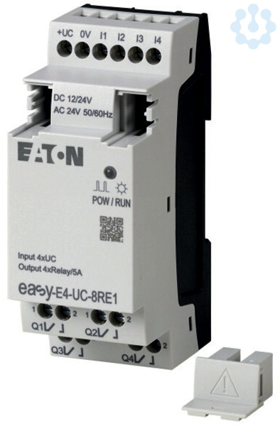 Ein-/Ausgangserweiterung für die Steuerrelais der Serie easyE4 mit einer Bemessungsbetriebsspannung von 12 VDC, 24 VDC oder 24 VAC. Diese Erweiterung stellt 4 digitale Eingänge für 12 VDC, 24 VDC oder 24 VAC, 4 Relais-Ausgänge für 12 - 250 VAC oder 12-220 VDC zur Verfügung. Die Anschlüsse erfolgen per Schraubklemme. Die Verbindung zum Steuerrelais easy-E4 oder einer anderen Erweiterung easy-E4 erfolgt mittels Verbindungsstecker easy-E4-CONNECT1 (Artikel Y7-197225) der im Lieferumfang enthalten ist.