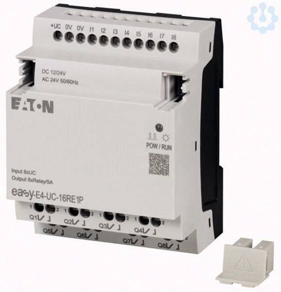 Ein-/Ausgangserweiterung für die Steuerrelais der Serie easyE4 mit einer Bemessungsbetriebsspannung von 12 VDC , 24 VDC oder 24 VAC. Diese Erweiterung stellt 8 digitale Eingänge für 12 VDC,24 VDC oder 24 VAC und 8 Relais-Ausgänge für 12 - 250 VAC oder 12-220 VDC zur Verfügung. Die Anschlüsse erfolgen per Push-In-Kemmen. Die Verbindung zum Steuerrelais oder einer anderen Erweiterung der Serie easyE4 erfolgt mittels Verbindungsstecker EASY-E4-CONNECT1 (Artikel 197225) der im Lieferumfang enthalten ist.