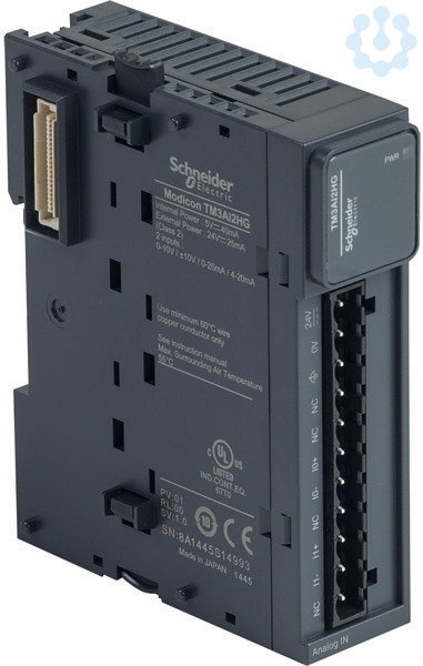 Analoge Eingangsmodule Modicon TM3. Modul TM3, 2 analoge Eingänge, hochauflösend. Abstand 5,08, Anschluss Feder, Auflösung 16 Bit oder15 Bit +Vorzeichen, Eingang_K ?10 bis +10 VDC,0 bis 10 VDC/0-20 mA, 4-20 mA. Abnehmbare Schraubklemmenleisten, im Lieferumfang enthalten.