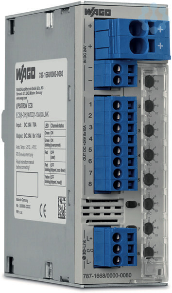 Elektronischer Schutzschalter. 8-kanalig. Eingangsspannung DC 24 V. einstellbar 1 ? 10 A. IO-Link