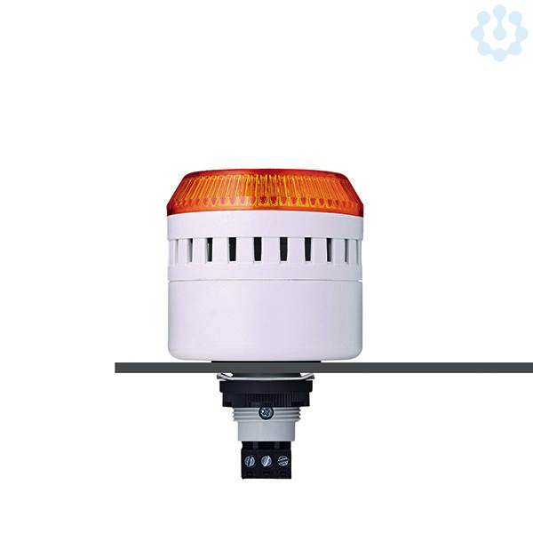 Ø 65 mm großer Einbausummer mit LED Dauerleuchte, max. 103 dB (A) Schalldruck, stufenlos regelbar , hohe Schutzart IP65, Einbaumaß Ø 22,5mm/M22, Dauerton und LED Dauerlicht getrennt ansteuerbar, Ansteuerung über Klemmenbelegung, komfortable Anschlusstechnik, für industrielle und allgemeine Anwendungen, Adapter für M30,5mm Einbaumaß verfügbar