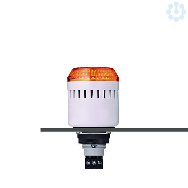 Ø 45 mm großer Einbausummer mit LED Dauerleuchte, max. 98 dB (A) Schalldruck, stufenlos regelbar, hohe Schutzart IP65, Einbaumaß Ø 22,5mm/M22, Dauerton und LED Dauerlicht getrennt ansteuerbar, Ansteuerung über Klemmenbelegung, komfortable Anschlusstechnik, für industrielle und allgemeine Anwendungen, Adapter für M30,5mm Einbaumaß verfügbar