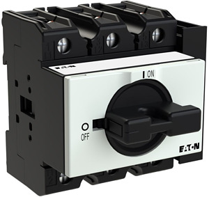 EIN-AUS-Schalter, Sortiment: EIN-AUS-Schalter, Typkenner: P3, mit schwarzem Knebel und Frontschild, Information zum Lieferumfang: Hilfsschalterkontakt oder Neutralleiter nachrüstbar., 3-polig, Schutzart: Front IP30, Bauform: Verteilereinbau, Bemessungsbetriebsleistung AC-23A, 50 - 60 Hz 400 V: P = 30 kW, Bemessungsdauerstrom: Iu = 63 A, Normen und Bestimmungen: IEC/EN 60947, VDE 0660, IEC/EN 60204, CSA, UL, Lasttrennschalter nach IEC/EN 60947-3