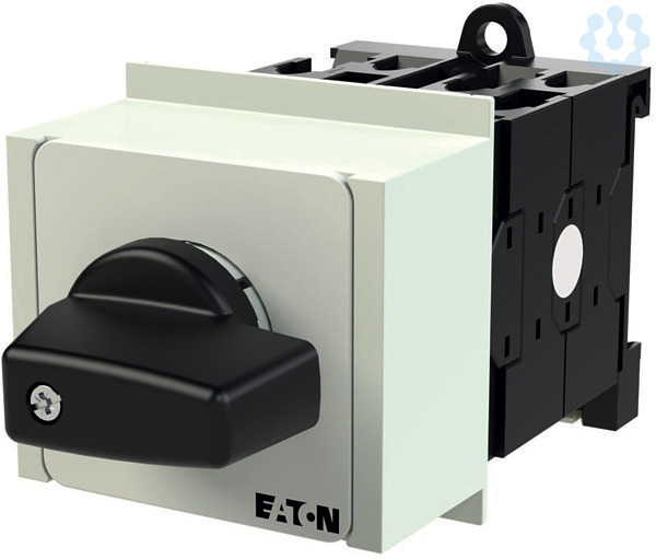 EIN-AUS-Schalter, Sortiment: EIN-AUS-Schalter, Typkenner: T0, mit schwarzem Knebel und Frontschild, 6-polig, Schutzart: Front IP30, Bauform: Verteilereinbau, Schaltwinkel: 90 °, Schaltverhalten: rastend, Frontschild: 0-1, Bemessungsbetriebsleistung AC-23A, 50 - 60 Hz 400 V: P = 5.5 kW, Bemessungsdauerstrom: Iu = 20 A, 4 Baueinheit(en), Normen und Bestimmungen: IEC/EN 60947, VDE 0660, IEC/EN 60204, CSA, UL, Lasttrennschalter nach IEC/EN 60947-3