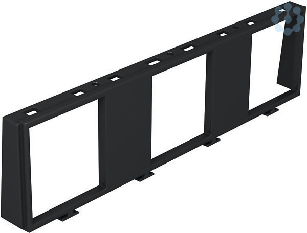 Einbaurahmen für den vertikalen Einbau von 3 Einzelgeräten Modul 45 in die Geräteeinsätze des Systems 55 mit Montageträger. Der Einbaurahmen ist vorgesehen für die Anwendung mit 0°-Steckdosen (Montagerichtung um 90° gedreht, Korntaktöffnungen oben und unten) und deren Anwendung in Verbindung mit Winkelsteckern und Geradeaussteckern.