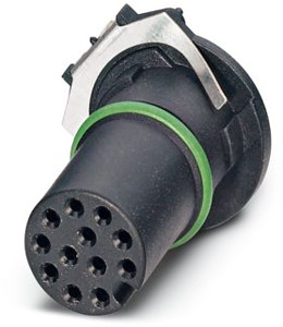 Sensor-/Aktor-Einbaubuchse, 12-polig mit Schirmblech, A-kodiert, mit geradem THR-Lötanschluss, nur Kontakteinsatz
