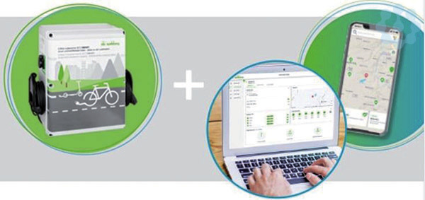 E-Bike Ladestation zum überwachten und kontrollierten Laden für den E-Biker und den Betreiber der Ladestation. Cloud-Anbindung über LAN, WLAN oder Mobilfunk, zur Verwendung mit dem Managementportal (inkl. ein Jahr Nutzungslizenz)