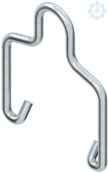 Einhängebügel, zum Einclipsen in die Seitenwandperforation von höhenunabhängigen Kabelrinnen und Verteilerrinnen, mit Anschlussschlaufe für mittige Abhängung mittels Gripple Sethaken, Seil oder Kette. Die Tragfähigkeitsangaben gelten nur bei ausreichender Verankerung mit dem tragenden Untergrund.