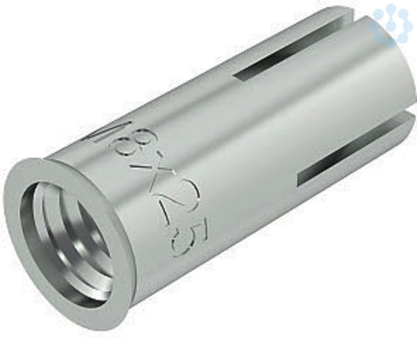 Einschlaganker zur Einzelbefestigung von nichttragenden Systemen in ungerissenem Beton und zur Mehrfachbefestigung in gerissenem und ungerissenem Beton. Brandschutztechnisch geprüft, Feuerwiderstandsklasse R 120 gemäß Europäisch Technischer Zulassung ETA-02/0020 (Opt. 7) und Europäisch Technischer Zulassung ETA-05/0116. Montage mit Markier- und Spreizwerkzeug.