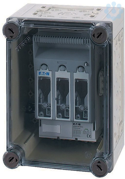 Einzelgehäuse mit 1x NH-Sicherungs-Lasttrennschalter, Material Polycarbonat, schlagfest, Schutzart IP65, metrische Vorprägungen in allen Seitenwänden, Sicherungsunterteil aufgebaut auf Montageplatte aus 3mm Stahlblech, Befestigungslaschen für Wandbefestigung, plombierbare Deckelverschlüsse, Deckel durchsichtig rauchgrau, Klemme für Anschluss des 4. Leiters (PE/N), Bemessungsbetriebsstrom Ie=155 A, Sicherungseinsatz NH00, Nachrüstbare Klemme für den 5. Leiter=K50/1, Sicherungseinsätze bitte separat bestellen.