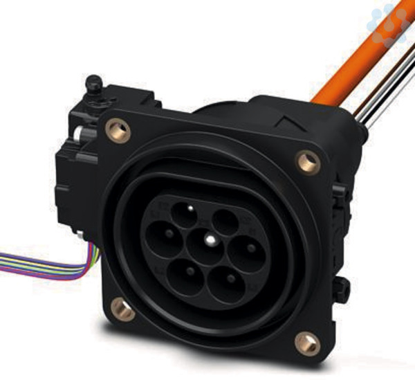 CHARX connect universal, Fahrzeug-Ladedose, zum Laden mit Wechselstrom (AC) von Elektrofahrzeugen (EV), AC Typ 2, IEC 62196-2, 32 A / 250 V (AC), Einzeladern, Länge: 2 m, Verriegelungsaktuator: 12 V, 4-polig, Vorder- und Rückwandmontage, M6, Gehäuse: schwarz, Für die AC-Kontakte ist eine Schutzkappe im Lieferumfang enthalten.