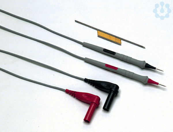 Sehr schmale 1 mm Spitze für schwer zugängliche Messpunkte. Länge der Messspitze bis zu 100 mm, Länge der Messleitung: 1 m. Einschliesslich: 3 Sätze federbelastete vergoldete Messspitzen und 2 Sätze Edelstahl-Messspitzen.
