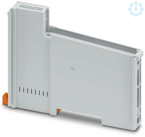 Tragschienengehäuse, I/O-Gehäuse, mit Lüftungsschlitzen, Breite: 12 mm, Höhe: 100 mm, Tiefe: 80 mm, Farbe: lichtgrau (ähnlich RAL 7035), Querverbindung: Busverbinder (optional), Polzahl Querverbinder: 8