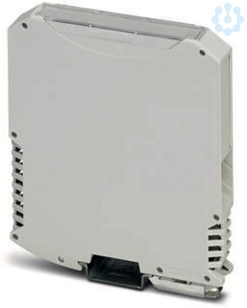 Tragschienengehäuse, Komplettgehäuse mit Metallfußriegel, hohe Bauform, mit Lüftungsschlitzen, Breite: 17,6 mm, Höhe: 99 mm, Tiefe: 113,65 mm, Farbe: lichtgrau (7035), Querverbindung: Tragschienen-Busverbinder (optional), Polzahl Querverbinder: 5