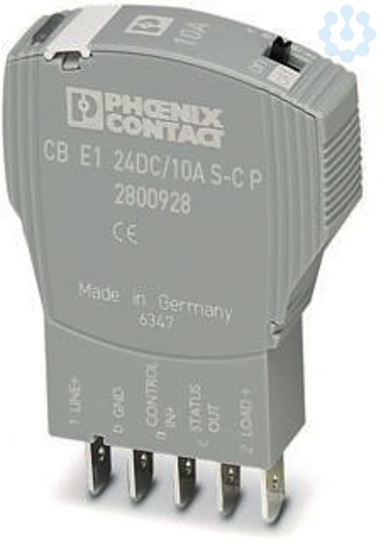 Elektronischer Geräteschutzschalter, 1-polig, aktive Strombegrenzung, Statusausgang und Steuereingang, Stecker für Basiselement.