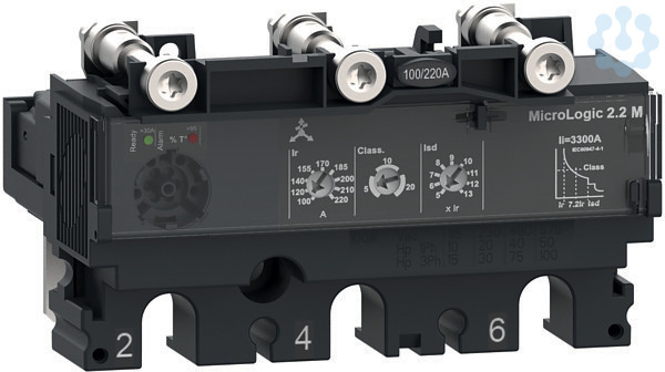 Bei diesem MicroLogic 2.2 M handelt es sich um ein 3-poliges 3d-elektronisches Auslösegerät, das bei den Leistungsschaltern ComPacT NSX 100/160/250 verwendet wird. Dieses elektronische Auslösegerät mit einer Nennleistung von 50 A ist die beste Wahl für Motorschutzanwendungen. Sie verfügt über einen anpassbaren Langzeitschutz gegen Überlast. Er bietet außerdem einen anpassbaren Kurzzeitschutz und einen festen unverzögerten Kurzschlussschutz.