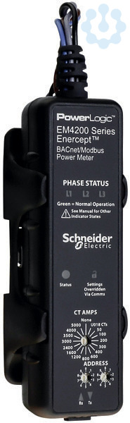 PowerLogic EM4200. Universal-Messgeräte Serie EM4200 für Wandlermessung über Low Voltage Current Transformer (LVCT) bis 2400 A und Rogowski-Flexwandler bis 5000 A für Messungen in Niederspannungsanwendungen bis 480 V AC. Einfache Inbetriebnahme ohne Software Konfiguration der Wandlerfaktoren und Kommunikation über Drehkodierschalter. EM4235 Enercept, Energiezähler Klasse 0.2S, Modbus/BACnet-Komm. RS-485, IEC Drahtkodierung.