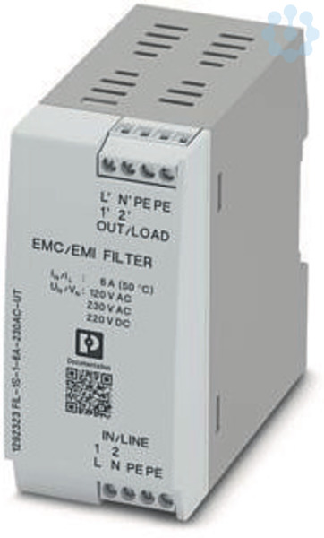EMV-Filter (Netzfilter) für einphasige AC- und DC-Systeme (Nennspannung: bis 230 V AC, bis 220 V DC), zur Montage auf NS 35, Nennstrom: 6 A