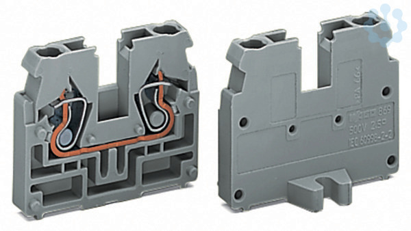 2-Leiter-Endklemme. ohne Drücker. mit Befestigungsflansch M4. für Schraub- u.ä. Befestigungsarten. Befestigungsloch Ø 4,2 mm. 2,5 mm². CAGE CLAMP®. 2,50 mm². grau
