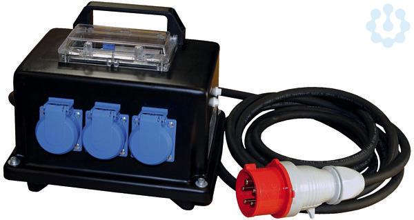 mit 5m Leitung H07RN-F5G2,5 Abgang / Absicherung: 1 RCD-Schutzschalter 4P 25A/30 mA -A- 6 Schutzkontaktsteckdosen 16A 2P 230V
