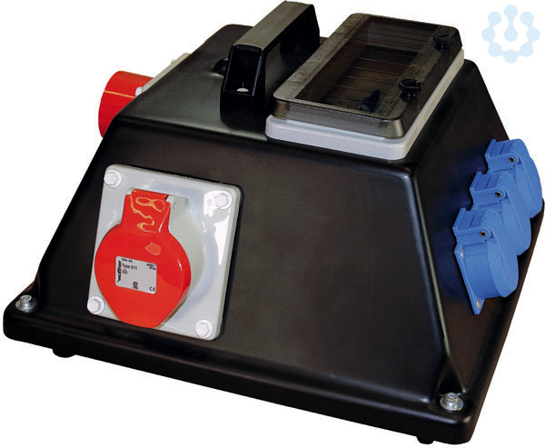 mit Tragegriff RCD-Schutzschalter unter Betätigungsklappen schutzisoliert Schutzart : IP 44 Größe ca.: 185 x 342 x 345mm / H-B-T Anschluss: 1 CEE-Anbaugerätestecker 16A 5P 400V 6h Abgang / Absicherung: 1 RCD-Schutzschalter 4P 25A/30 mA -A- 2 CEE-Anbaudosen 16A 5P 400V 6h 3 Schutzkontaktsteckdosen 16A 2P 230V