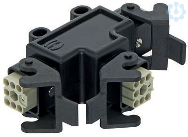 Energieverteiler, mit 3x Han Q 7/0, im Han 3 A Anbaugehäuse, Kontakte: 7, Werkstoff Gehäuse: Polyamid (PA), RAL 9005 (tiefschwarz)