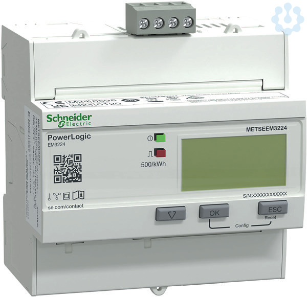 Die PowerLogic EM3000-Serie umfasst eine Reihe von dreiphasigen, auf DIN-Schienen montierten Energiezählern mit hinterleuchtetem LCD-Display. Messung von Wirkenergie und Wirkleistung. Die Versorgungsspannung kann in Netzen mit 50 Hz oder 60 Hz zwischen 100 und 277 VAC oder zwischen 173 und 480 VAC liegen. Der Bemessungsstrom der Leitung für dieses Messgerät beträgt bis zu 63 A. Das Messgerät liefert die folgenden Genauigkeiten, Wirkenergieklasse 1 nach IEC62053-21, IEC61557-12 und Klasse B nach EN50470-3. Das Kommunikationsprotokoll ist Modbus RTU. Dieses Messgerät kann für Teilabrechnungs- und Teilzählungsanwendungen eingesetzt werden. Die Produktabmessungen sind wie folgt: Breite 90 mm, Tiefe 69 mm, Höhe 95 mm und Produktgewicht 451 g. Zur zusätzlichen lokalen Signalisierung gehören eine grüne LED-Betriebsanzeige, eine blinkende gelbe LED für die Genauigkeitsprüfung und Kommunikationsanzeigen. Zu den Zertifizierungen gehören CE, UL und MID. Das Messgerät kann in einphasigen und neutralen (1P+N), dreiphasige