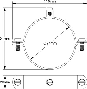 Erdungs-Rohrschelle mit Nietkontakt, zur Sicherstellung des Potentialausgleichs nach DIN VDE 0100..., für die Verwendung in trockenen Innenräumen, verwendbar für verzinkte Rohre. Abmessungen (ca. Maße) H x B x T : 88 x 110 x 20 mm für Rohr-Ø