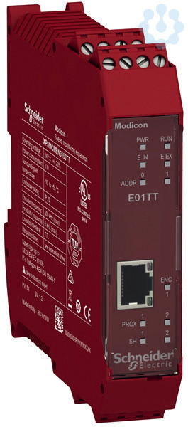 Preventa. Erweiterungsmodul für den modularen Sicherheitscontroller XPSMCM zur sicheren Drehzahl- und Drehrichtungsauswertung. Eingänge 1 Encoder TTL über RJ45-Buchse, 2 Sensoren über Klemmen. Rückwandstecker beiliegend. Anschluss steckbare Schraubklemmen.