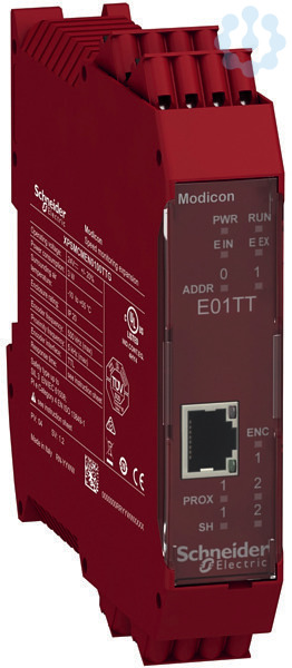 Preventa. Erweiterungsmodul für den modularen Sicherheitscontroller XPSMCM zur sicheren Drehzahl- und Drehrichtungsauswertung. Eingänge 1 Encoder TTL über RJ45-Buchse, 2 Sensoren über Klemmen. Rückwandstecker beiliegend. Anschluss steckbare Federzugklemmen.