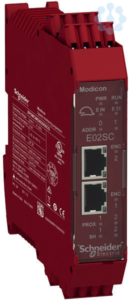 Preventa. Erweiterungsmodul für den modularen Sicherheitscontroller XPSMCM zur sicheren Drehzahl- und Drehrichtungsauswertung. Eingänge 2 Encoder Sin/Cos über RJ45-Buchse, 2 Sensoren über Klemmen. Rückwandstecker beiliegend. Anschluss steckbare Federzugklemmen.