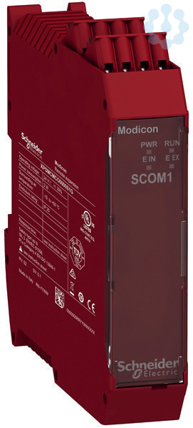 Preventa. Erweiterungsmodul für sichere Kommunikation des modularen Sicherheitscontrollers XPSMCM. Realisierung von dezentralen Konzepten. Leitungslänge 50 m bis zum nächsten Modul. Gesamtleitungslänge 250 m. Topologie Linie. dieses Modul befindet sich am Anfang oder Ende der Linie und kommuniziert mit einem weiteren Modul. Anschluss steckbare Federzugklemmen.