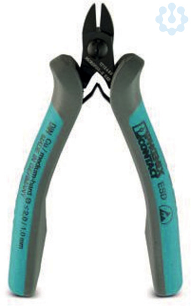 ESD Elektronik-Seitenschneider, runder Kopf, ohne Fase, mit Öffnungsfeder, entspiegelt und phosphatiert, 2-Komponenten Griff, Durchmesser Schneidkapazität: weich 0,2 ... 2,0 mm. mittelhart 1 mm, Verpackungsart: mit Halterung für Verkaufsdisplay (Backcard)