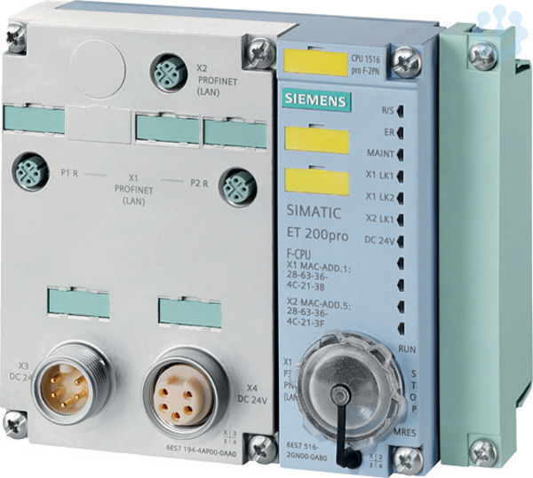 SIMATIC DP, CPU 1516pro F-2 PN für ET 200pro, Zentralbaugruppe mit Arbeitsspeicher 3MB für Programm und 7,5MB für Daten, 1. Schnittstelle: PROFINET IRT mit 3-Port-Switch, 2. Schnittstelle: PROFINET RT, 6 ns Bit-Performance, Schutzart: IP65/67, SIMATIC Memory Card notwendig, Anschlussmodul notwendig SIMATIC ET 200pro ist ein modulares, robustes und vielseitiges Peripheriesystem in Schutzart IP65/67, das sich durch sein umfassendes Modulspektrum auszeichnet. Siemens bietet Ihnen somit eine platzsparende und multifunktionale Anwendungsmöglichkeit, die dank des modularen Aufbaus direkt an der Maschine installiert werden kann und keinen Schaltschrank benötigt.?? Sie können flexibel und schnell auf verschiedene Automatisierungsanforderungen reagieren, da das Peripheriesystem eine umfangreiche und innovative Bandbreite an Modulen enthält. ??Neben dem vielseitigen Modulspektrum ist das System aufgrund seines Aufbaus platzsparend und einfach zu montieren. Darüber hinaus können Sie die Stillstandzeiten Ihrer Anlage auf