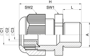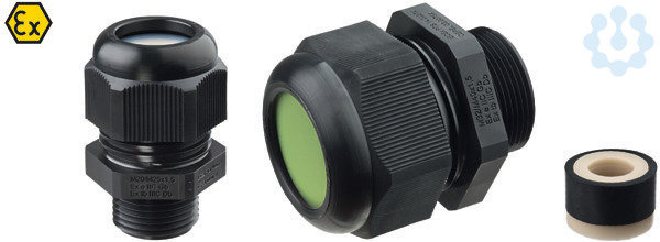 Ex-Erweiterungskabelverschraubung aus Polymid PA6, Staubschutzscheibe: Polyethylen PE-LD, Farbe: grün, speziell für relativ große Kabeldurchmesser, Schutzart: IP66 Farbe: tiefschwarz (RAL 9005)