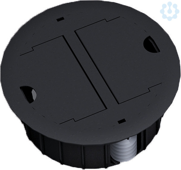 Kabeldurchlass für Doppel- und Hohlböden zur Durchführung von Kabeln, Einbauöffnung: 109mm. Aussendurchmesser: 132mm. Aussendurchmesser: 132mm. mit abnehmbaren Deckel als Lochabdeckung mit zwei Leitungsausführungen. Material: PA6 halogenfrei. Farbe: schwarz RAL9005.