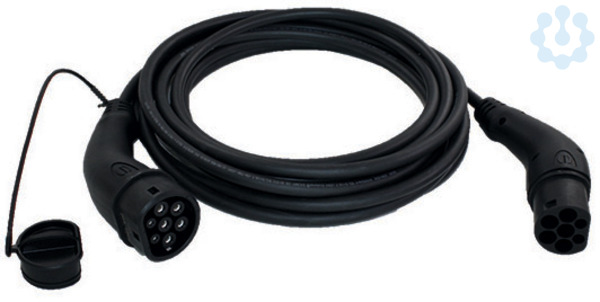 Stecker Typ2 Buchse 20A 3ph. mit Schutzkappe am Gehäuse, Stecker Typ2 Stift 20A 3ph Fahrzeugladekabel 5x2,5mm² + 0,5mm² sw 7500mm lang