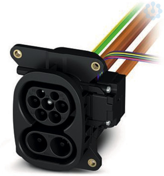 CHARX connect, Fahrzeug-Ladedose, Verriegelungsaktuator rechts, zum Laden mit Gleichstrom (DC), zur Installation in Elektrofahrzeugen (EV), Combined Charging System, CCS Typ 2, IEC 62196-2, IEC 62196-3, 200 A / 1000 V (DC), Länge: 6 m, Vorder- und Rückwandmontage, M6, Generation 4, Für die DC-Kontakte ist eine Schutzkappe im Lieferumfang enthalten.