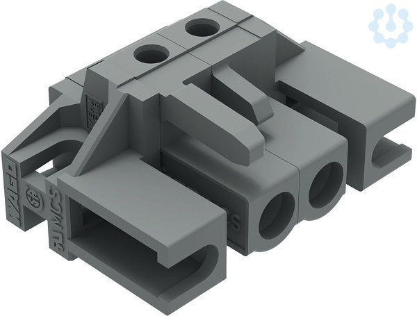 THT-Federleiste. Lötstift 0,6 x 1,0 mm. abgewinkelt. Distanzflansch. 2,5 mm². Rastermaß 5 mm. 2-polig. grau