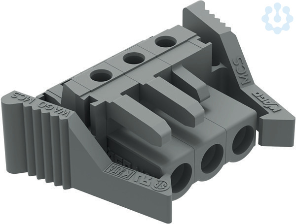 THT-Federleiste. Lötstift 0,6 x 1,0 mm. abgewinkelt. Verriegelungsklinke. 2,5 mm². Rastermaß 5 mm. 3-polig. grau