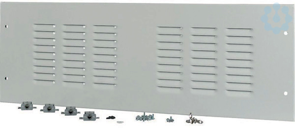starre Frontplatte mit der Höhe von 350mm und der Breite von 1000mm, Stahlblech, kunststoffbeschichtet, RAL 7035, 4 fach verschraubbar, belüftet, IP42