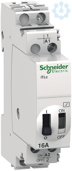 Fernschalter Acti 9 iTLc. 1-polig, 1 Schließer, Nennstrom 16A, Steuerspannung (Uc) 230-240V AC. Mit Zentral-Ein und Ausschaltung.