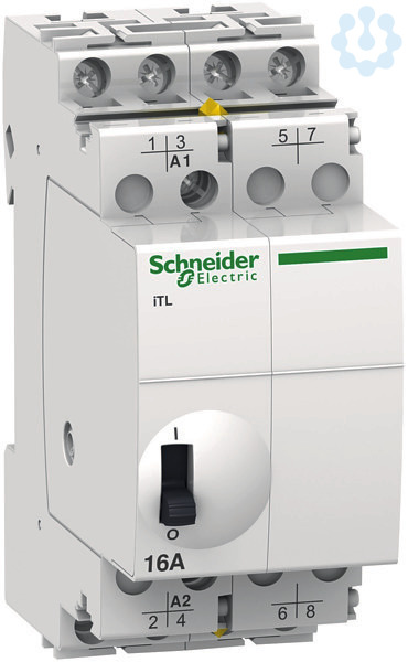 Fernschalter Acti 9 iTL. 4-polig, 4 Schließer, Nennstrom 16A, Steuerspannung (Uc) 24V AC / 12V DC. Fernschalter zum Schalten von Beleuchtungsstromkreisen mit einem oder mehreren Tastern. Breite in TE 1.