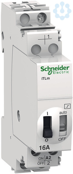 Fernschalter Acti 9 iTLm. 1-polig, 1 Schließer, Nennstrom 16A, Steuerspannung (Uc) 230-240V AC. Für Ein- und Ausschaltung durch Dauersignal.