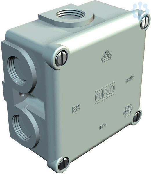 Schutzart IP54, Nennspannung 660 V, Nennquerschnitt mm², 2 Befestigungslöcher für Schrauben bis 5 mm Ø an der Außenseite des Kastens 4 Deckelschrauben, 7 ausbrechbare Einführungen mit Gewinde M20 x 1,5, vorzugsweise für Kabelverschraubungen mit kurzem Anschlussgewinde. Abmessungen:81,9 x 81,9 x 46 mm Lichte Innenmaße: 73x73x35 mm.