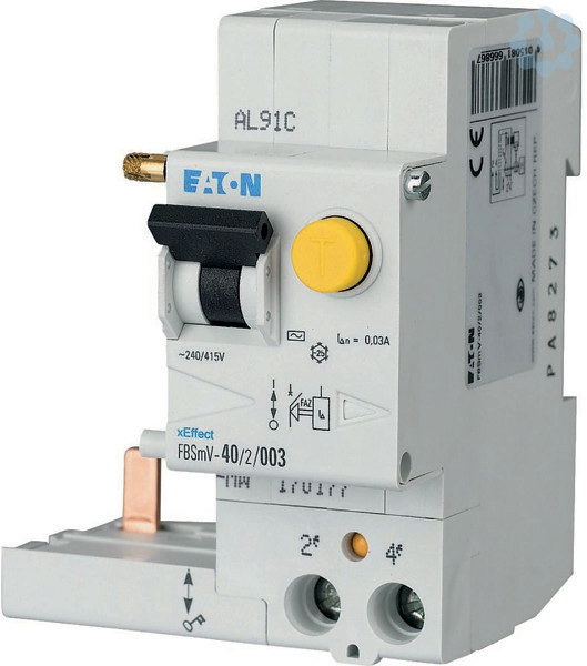 Anbaubare Fehlerstromschutzeinheit FBSmV, 2-polig, Bemessungsstrom In: 40 A, Bemessungskurzschlussfestigkeit Icn:, Bemessungsfehlerstrom I?N: 1 A, Schaltgeräte für Industrieanwendungen und gehobener Zweckbau