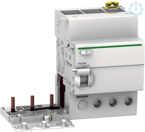 FI-Block Acti 9 Vigi iC60L. 3-polig, Nennstrom 63A, Nennfehlerstrom 300mA, Typ A, Betriebsspannung (Ue) 400-415V AC, Isolationsspannung (Ui) 500V AC. Kann rechtsseitig an Leitungsschutzschalter der Serie iC60L montiert werden. Die Auslösung durch Fehlerstrom wird von einer roten, mechanischen Anzeige am Knebel angezeigt. Klemmen IP 20. Prüftaste für die regelmäßige Prüfung der Funktion. Technologie der Auslöseeinheit- thermomagnetisch. Zusätzlich anreihbare Hilfsmodule (optional)- Fehlermeldeschalter, Hilfsschalter, Unterspannungsauslöser, Überspannungsauslöser, Arbeitsstromauslöser. Der Vigi iC60L FI-Block erfüllt folgende Normen- IEC/EN 61009-1. Des Weiteren ist diese Baureihe VDE zertifiziert!.