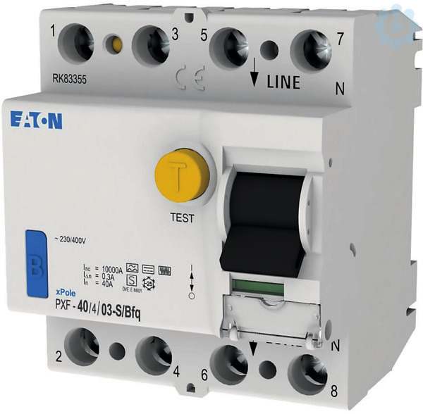 Fehlerstromschutzschalter PXF, 4-polig, Bemessungsstrom In: 40 A, Bemessungskurzschlussfestigkeit Icn: 10 kA, Bemessungsfehlerstrom I?N: 0,3 A, Schaltgeräte für Wohn- und Zweckbau